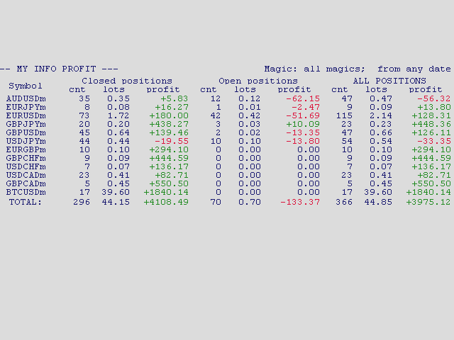 - if you trade manually, but sometimes use utilities for placing orders (for example, with magic number 12345) and want to get information only on manual trading and these utilities. In this case, set "0,12345"