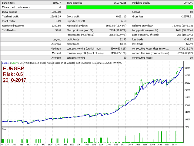 The expert should be considered as a long-term investment. Even though it is able to open a relatively large amount of positions, it may also have days with no trading at all. It mainly works on trending markets, and it can easily get 2-3 months of stagnation and losses when the market is flat. It is recommended to thoroughly study the backtest results or to trade on a demo account in order to have realistic expectations before you decide to trade on a live account.