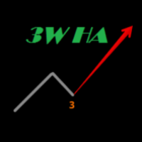 The indicator searches for the third wave based on the Heiken Ashi values and marks its beginning with an arrow.