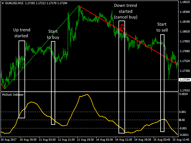 The McDuck Indicator help determine the trend direction and find the point to open a position.