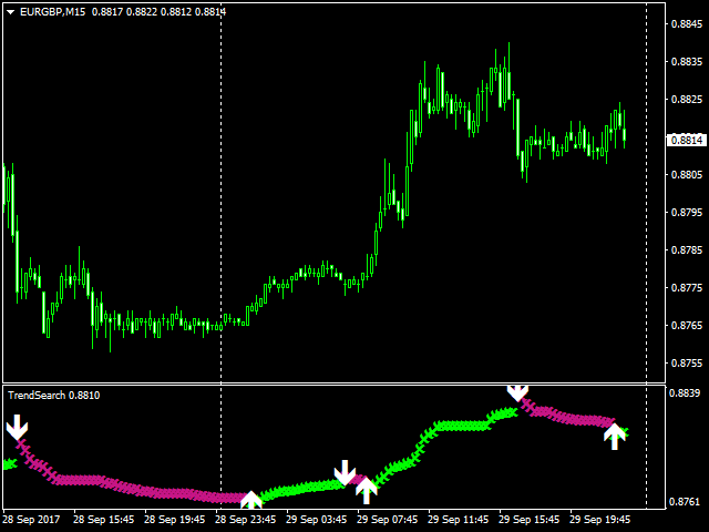 TrendSearch helps traders define the trend start and end, thus allowing them to select the best entry/exit points. It is very easy to use. The up arrow means it is time to buy, while the down one instructs you to sell. I have simplified the indicator to the maximum possible extent leaving only the most necessary parameters.