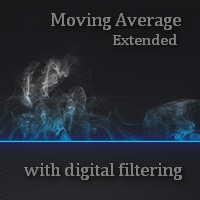A Moving Average with 26 types of smoothing and 16 variants of source prices used for calculation, with additional 71 levels of digital filtering. When using calculation period equal to 1, you will only get the digital filtering of the used price without primary smoothing. Rise and fall are marked with a separate color.