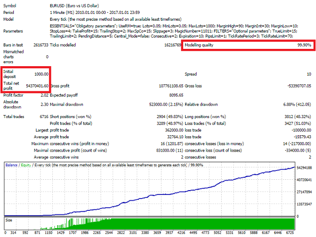 Backtests are completed with %99.90 modeling quality and for various cases such as, volatile and calm market, during news etc. Impact Expert works best at EURUSD on 1min timeframe.