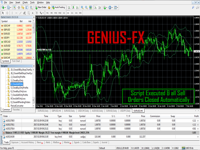 The script closes all sell orders excluding pending orders. It is very helpful in a situation where you have several sell orders and you need to close all of them with just a single click. You do not have to go through each order one at a time to close them, all you have to do is to either double-click the script or drag and drop the script on your chart. The script automates the process very quickly saving you time as well as money. Always remember to check the "Allow automated trading" checkbox of the expert advisor settings in the option menu of your MT4 Platform when using expert advisors and scripts.