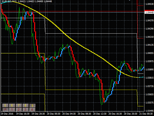 - The indicator displays fast and slow smoothed lines in the quote window.
