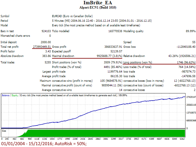 Apart from closing positions by take profit, the EA can also close them if a signal weakens or market conditions change. This allowed the EA to show a high percentage of profitable deals (91.9 %), as well as a low drawdown within 12 years.