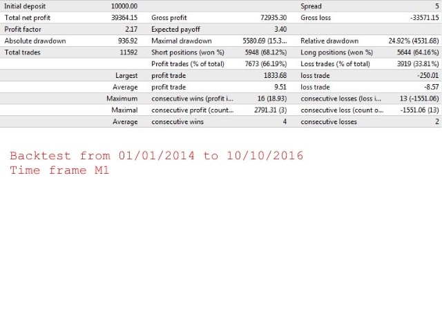 This EA works preferably on EURUSD with time frame from M1 to H1.