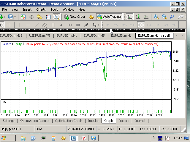 Default parameters are set for EURUSD M5.