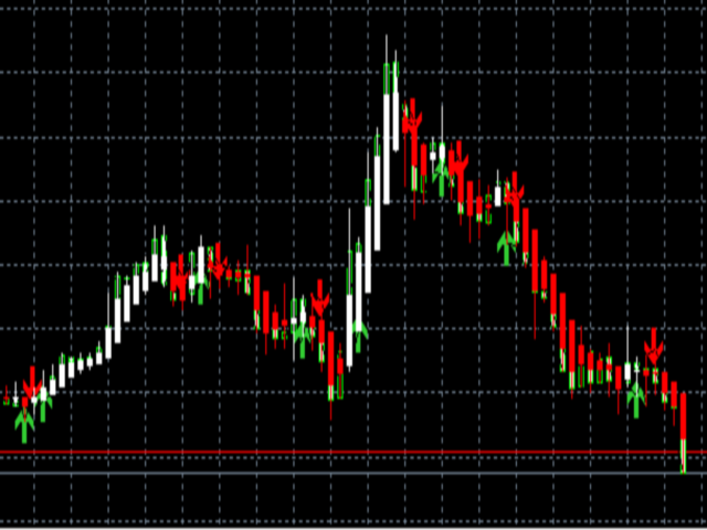 The HeikenJohn indicator is a refined version of the standard Heiken Ashi indicator. This indicator is remarkable for the fact that in 86% of cases the color of the next candlestick will be the same as the color of the last one. For convenience, the change of the indicator color is now displayed as arrows.
