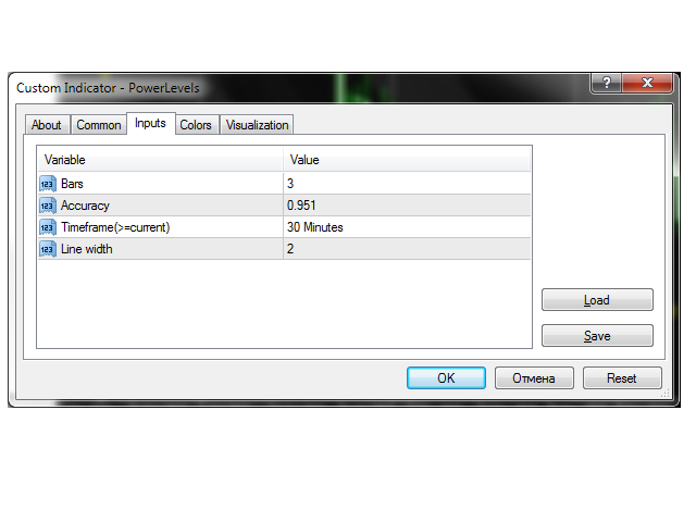 The indicator displays support/resistance levels, which are determined based on multiple last bars.