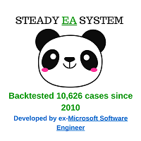 Steady EA System is a fully automated EA which trades based on reversal during consolidations. Each open position is protected by a fixed TP and SL of 90 pips to minimize possible drawdown. In reality, the algorithm looks for reversals and executes TP in real time. Since TP points vary based on price, volume, and volatility in real market condition, it is not statically set in the beginning but rather computed for every tick at run time. Realistically, this EA will look for reversals using proprietary settings of oscillator indicators behind the scene.