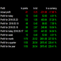 Indicator shows the profit in points, as a percentage and in the deposit currency.