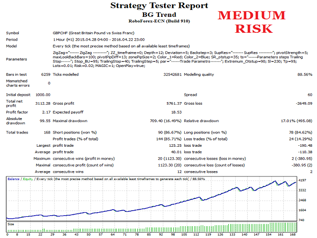 BG Trend is a new Expert Advisor for trading GBPCHF. The used timeframe is H1.