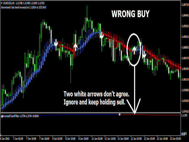 - Sell when a white DOWN arrow shows up AND the Advanced Trend Scanner is also downtrend
