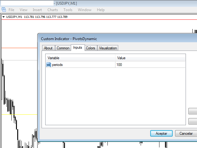 The next indicator calculate pivot points (Pivot point, Resistance1, Resistance2, Resistance3, Support1, Support2, Support3) using classical formula but instead of using static data (previous day data) uses x bars that keep updating as new bar is made.