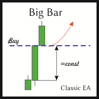 The EA opens a position along the movement direction after each bar, the body of which exceeds the specified size.