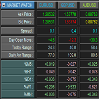 This is a panel for market review and evaluation of multicurrency price movements. It shows main parameters for a user defined group of symbols in the form of a table. The following values are displayed: