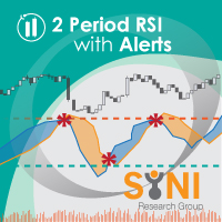 - Short period (Default=14): number of bars used to calculate short period RSI