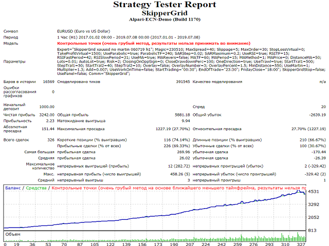 SkipperGrid is designed for automated Forex trading. Carefully selected indicators provide fairly accurate market entry and the possibility of self-optimization for the current market.