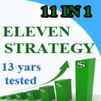 This Expert Advisor consists of 11 strategies, each running on 4 timeframes M15, M30, H1, H4. The EA uses standard MT4 indicators Bollinger Bands, CCI, RSI, RVI, Force Index, Moving Average, DeMarker, MACD, OsMA, Stochastic, WPR, Money Flow Index. The EA checks indicator values on the past or current bar (can be selected in the settings: 1 - past bar, 0 - current) and if they match, it opens an order. Deals are closed either by sl or tp. During backtesting the EA passed through all market conditions over the past 13 years. Configured pairs: EURUSD, GBPUSD, USDJPY, USDCAD, AUDUSD.