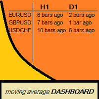 Moving Average Dashboard Bars ago is a unique multi currency, multi time frame dashboard. The dashboard is very simple. You select two moving averages, the instruments and timeframes