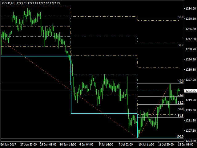 Keep in mind that this is not a buy/sell indicator. It is simply a resistance/support price level indicator. This means that when there is a firm and decisive judgment of price action (using the Holy Trinity Prices, Peaker or any other price action indicator(s)) - when the direction has been determined, of which it is believed that price will move; this indicator presents the immediate support/resistance levels, which price must first encounter along its line of retracement.
