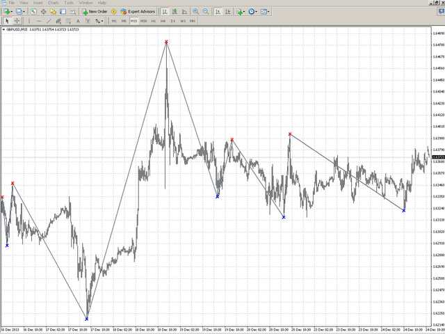 指标显示连接图表上的关键最高价、最低价的趋势线。最小价格变化参数定义百分比数值,即生成新的趋势线所需的价格变化。