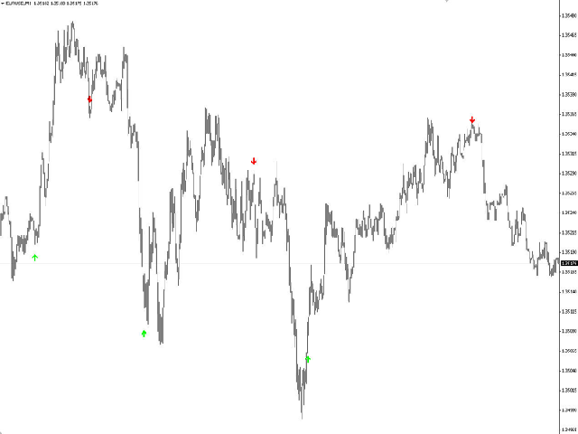- The indicator displays where to buy and sell (the red arrow shows where to sell, while the green one shows where to buy);