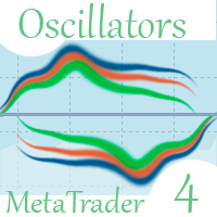 Oscillators has eight displays of the selected oscillator. For example: in one window, you can output the RSI oscillator of the current timeframe with periods of 5 and 21, also add the output of the same indicator from the higher timeframe and with different periods.