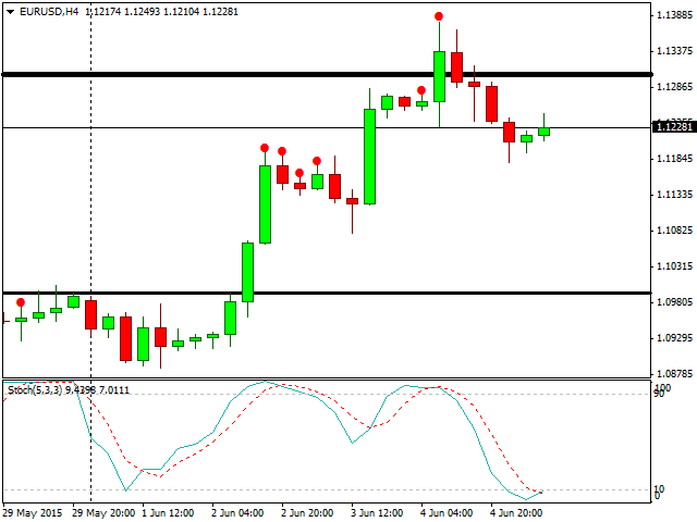 Classical Stochastic indicator. The only difference is as follows: the bars when the Stochastic values are in extreme zones are marked with points in the main chart window. The current bar which has not completed doesn't participate in calculations. The indicator can be useful for the traders who use Stochastic in their trading. The lower part of the chart is free of any data.