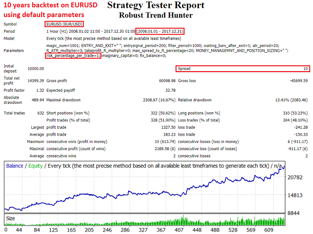Robust Trend Hunter is a fully automated EA aiming to capture sizable movements within trends. Unlike many other EAs within the market requiring continuous update or optimization, it manages to sustainably perform well in ever-changing market conditions without intermittent adjustments. Besides, the inbuilt money management function allows you to adjust the risk level according to your personal trading objectives.