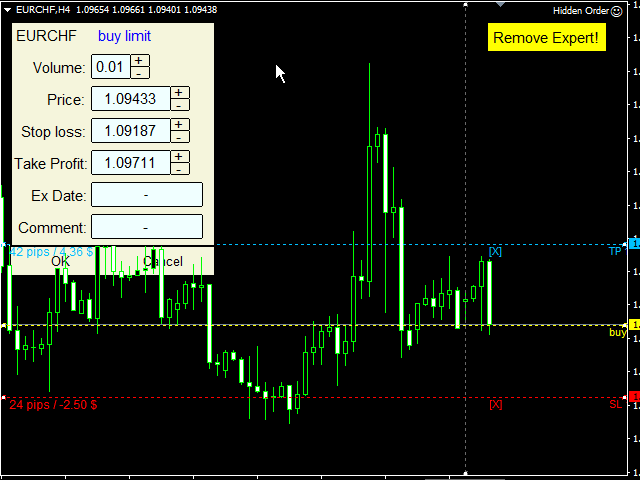 - To place the order, the computer must be turned on (VPS recommended for long term trading.)