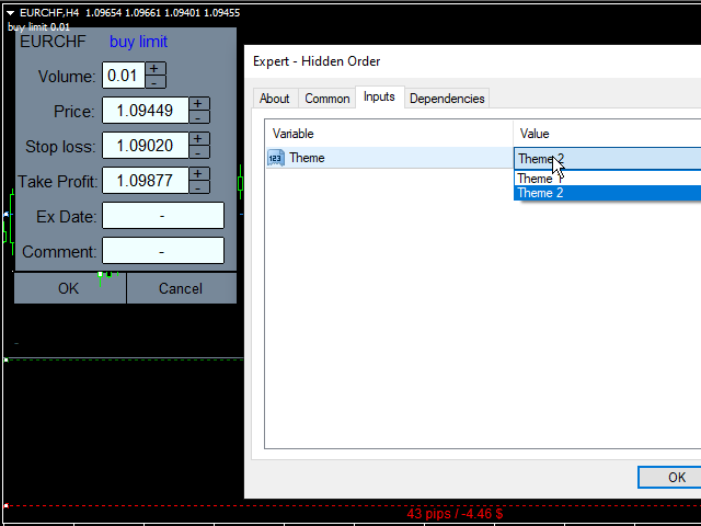 - In this method, the pending orders(buy stop, buy limit, sell stop and sell limit)are simulated by market execution(buy and sell), so it may sometimes (rarely), have few tolerance for position values(0.1 - 0.2 pips).