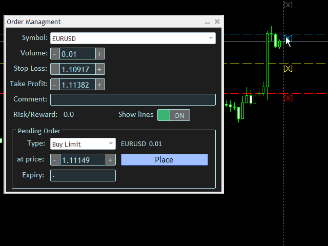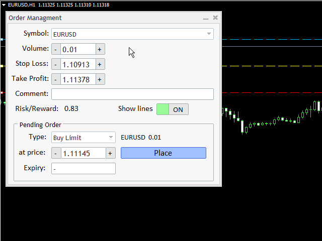 On the other hand, the calculation of the losses and profits value before ordering is always a big challenge for traders; This expert is very useful in taking a position and calculating the amount of the stop loss/the take profit(in the currency). The expert will also calculate the risk/reward and help you to make a decision.