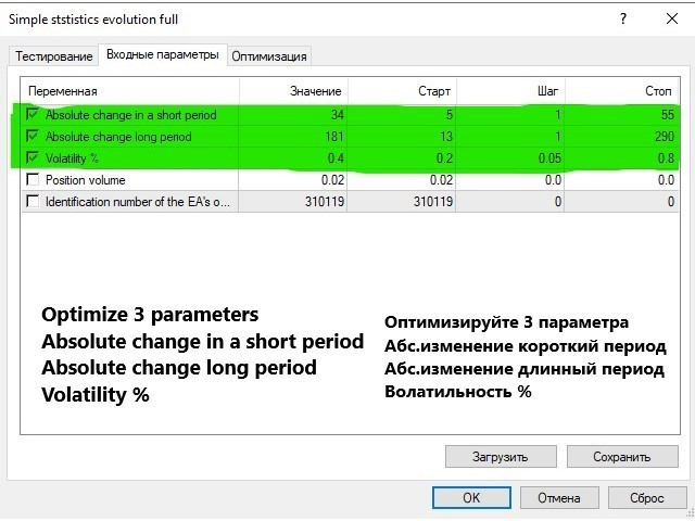 "Change and Deviation" работал на реальном счете. Фондовые индексы, нефть, золото, биткойн, валюта, акции. Хорошая прибыль при умеренных рисках на волатильных трендовых рынках. Оптимизируйте всего 3 параметра: короткий период расчета изменений, длинный период период расчета изменений, волатильность советника и убедитесь самостоятельно!