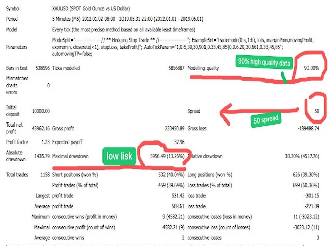 3、使用 90% 高质量的模型数据提高回测可靠性,设置 50 Spread 的大点差,回测结果依然能有1.23的盈利比;使用更小的点差,盈利比将更高;