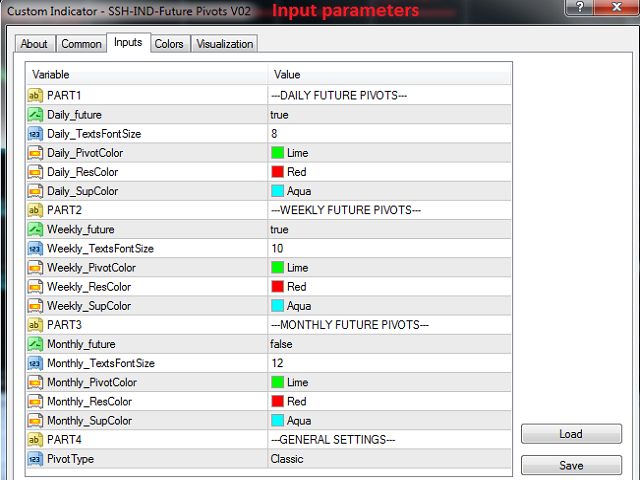 Daily_PivotColor , Daily_ResColor , Daily_SupColor : Set the color of daily pivot lines