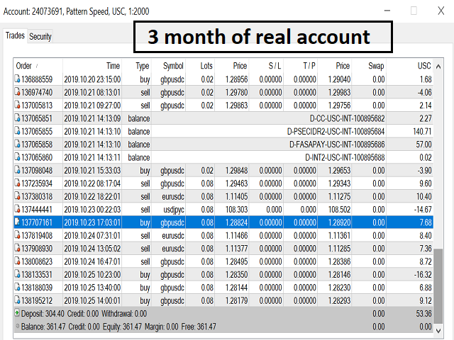The robot is made based on the money management system algorithm. All positions are taken using a chart pattern and are calculated using the money management system algorithm. All parts of the system are virtually tested for 10 years with a spread of 30 points. Testing with large spreads to protect the possibility of widening spreads and requote in the future.