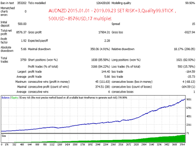 策略广泛适应多种货币,建议适用于M5:AUDCAD AUDCHF AUDNZD CADCHF CHFJPY EURAUD EURCHF EURCAD GBPCHF NZDCAD NZDCHF