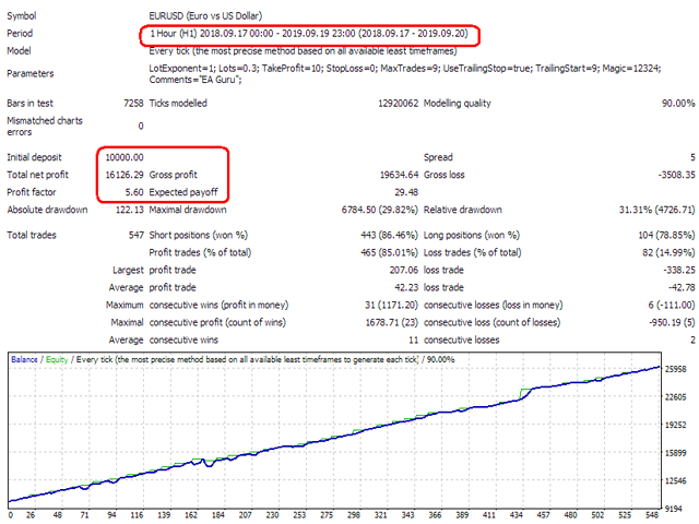 How the EA Guru EA works: EA Guru expert Advisor buys or sells according to the signals of the indicators, opens the first order when the trend changes, then additional orders are placed. Orders are closed by trailing stop, stop loss or take profit . Theoretically, the EA Guru EA can be used in any market, preferably with a low spread and good liquidity .