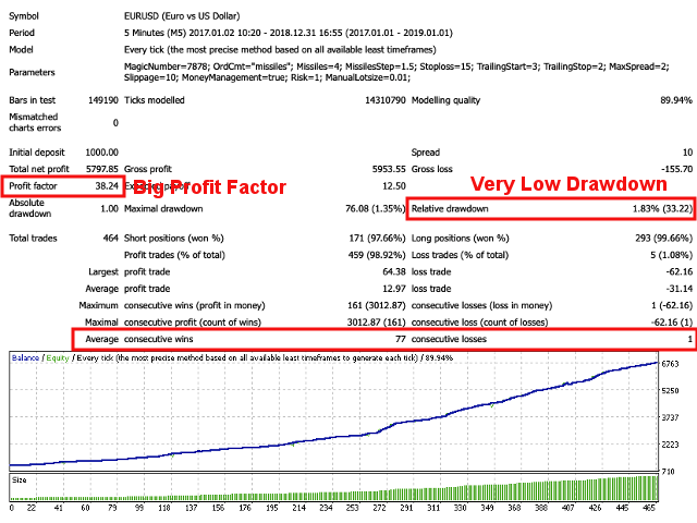 MISSILES EA uses no grid, no martingale, no arbitrage, no hedges, no tick scalping, and the best part is running fully automatic.
