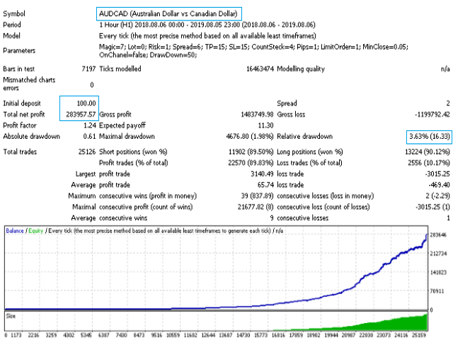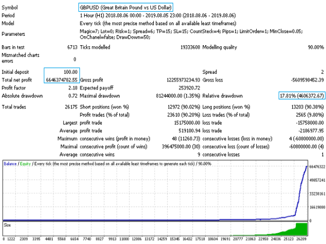 level of spread, the bot goes through any test historical period on any currency pair.