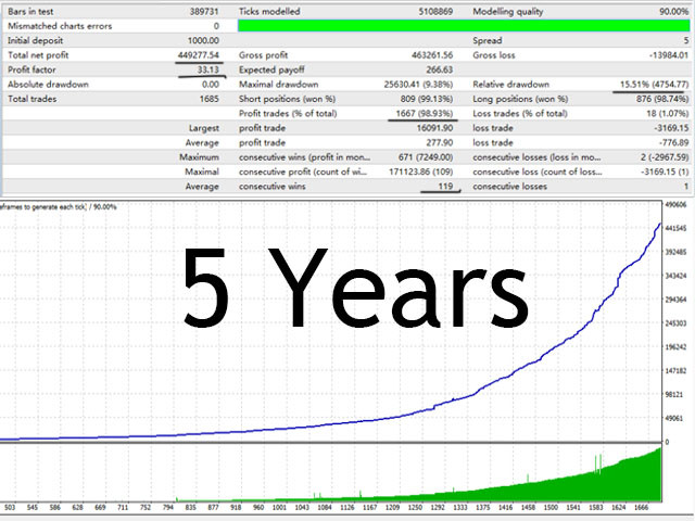 鱼网专业版是一款多模式突破挂单自动交易系统,相比普通版本它加入了网格功能,用户可以自由选择是否启用此功能,它能把风险降到最低的同时来赚取更多的利润。在5年的模拟测试中它表现的非常出色,起始资金1000美元净利润45万美元,盈利比33,盈利交易占比98%,最大浮亏仅15%,这在市场所有产品中是非常少见的。建议用低点差低延迟平台,这样能保证系统更有效运行,适用于GBPUSD5分钟图表。