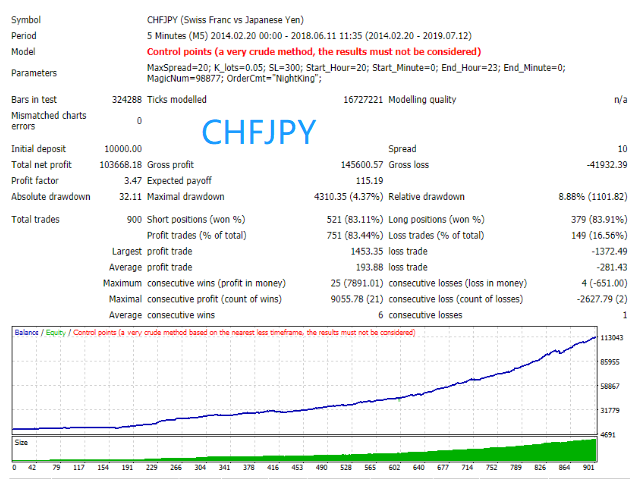 NightKing 是一款基于早盘头皮策略的震荡交易系统,适用于28个主要直盘和交叉盘货币兑,适用周期为M5,每单都带有止损,风险可控,收益强劲。