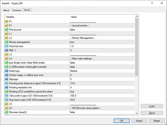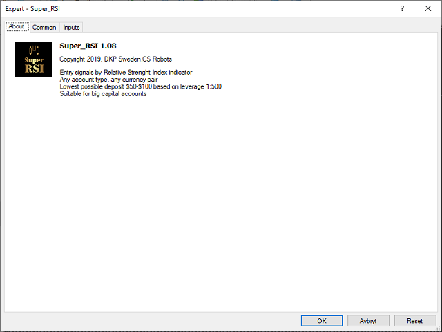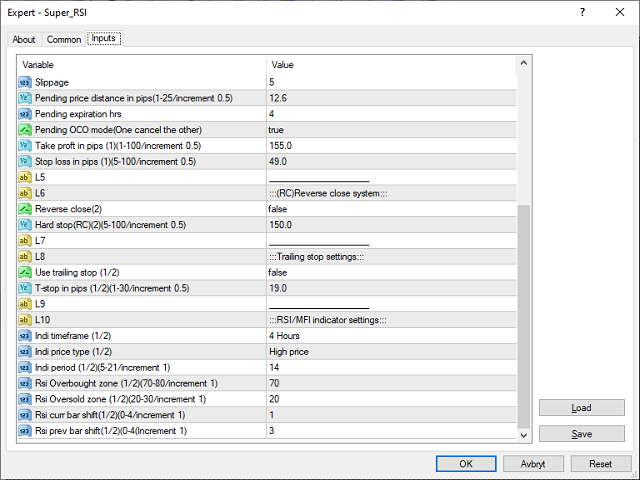 - Easy and fast to optimize - Main system (1) or Reversal system (2). All settings numbered (1 or 2) in which you easy pick corresponding setting to optimize. Optimizations are done on 'Open prices' mode and periods between 6-12 months or when presence of losses begin to get greater then profits. All available set files including default settings are only optimized for a short period of current market 2019.