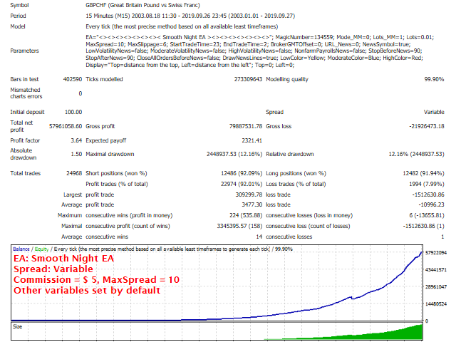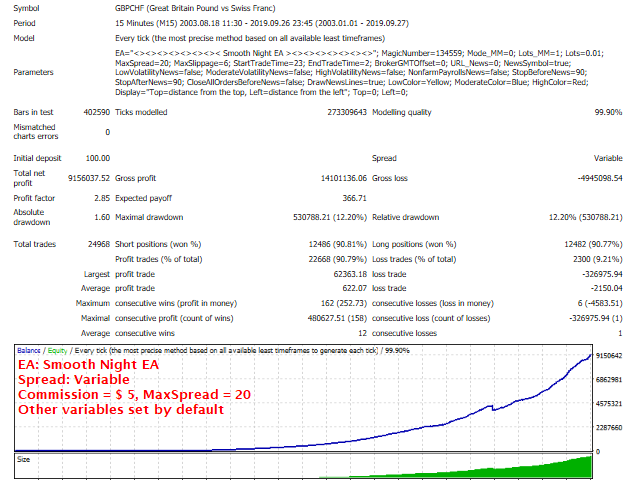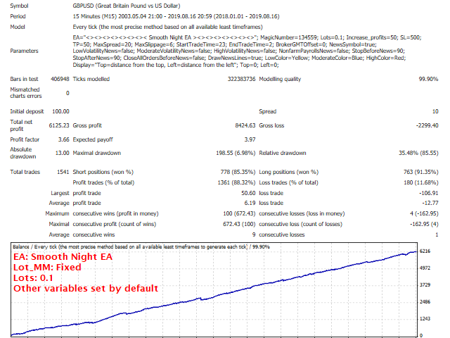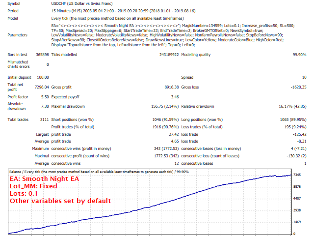 This EA has passed 16 years back test of real tick data (2003-2019).