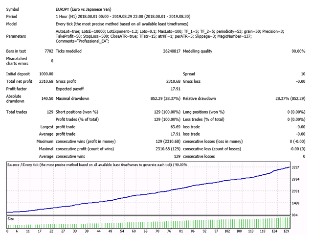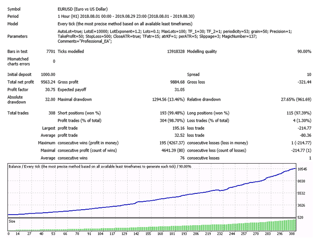The Professional EA uses standard indicators and my calculations. The EA is designed for the eurusd currency pair , but it works well on other pairs as well.