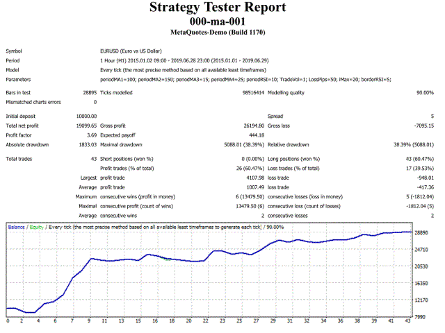 This MQL expert advisor works only in up trend and for input position and output from trade is used combination of moving averages. For confirmation is evaluated parabolic SAR.