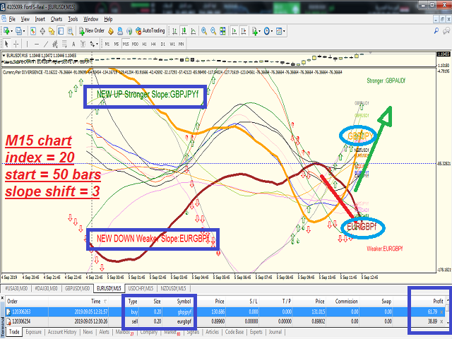 - First it indicates the most powerful trended direction pairs : Strongest / Weaker