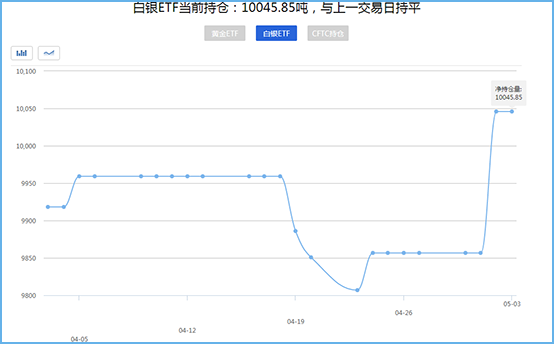 截至5月3日,美国商品期货交易委员会白银ETF持仓量为10045.85吨,与上一交易日持平。